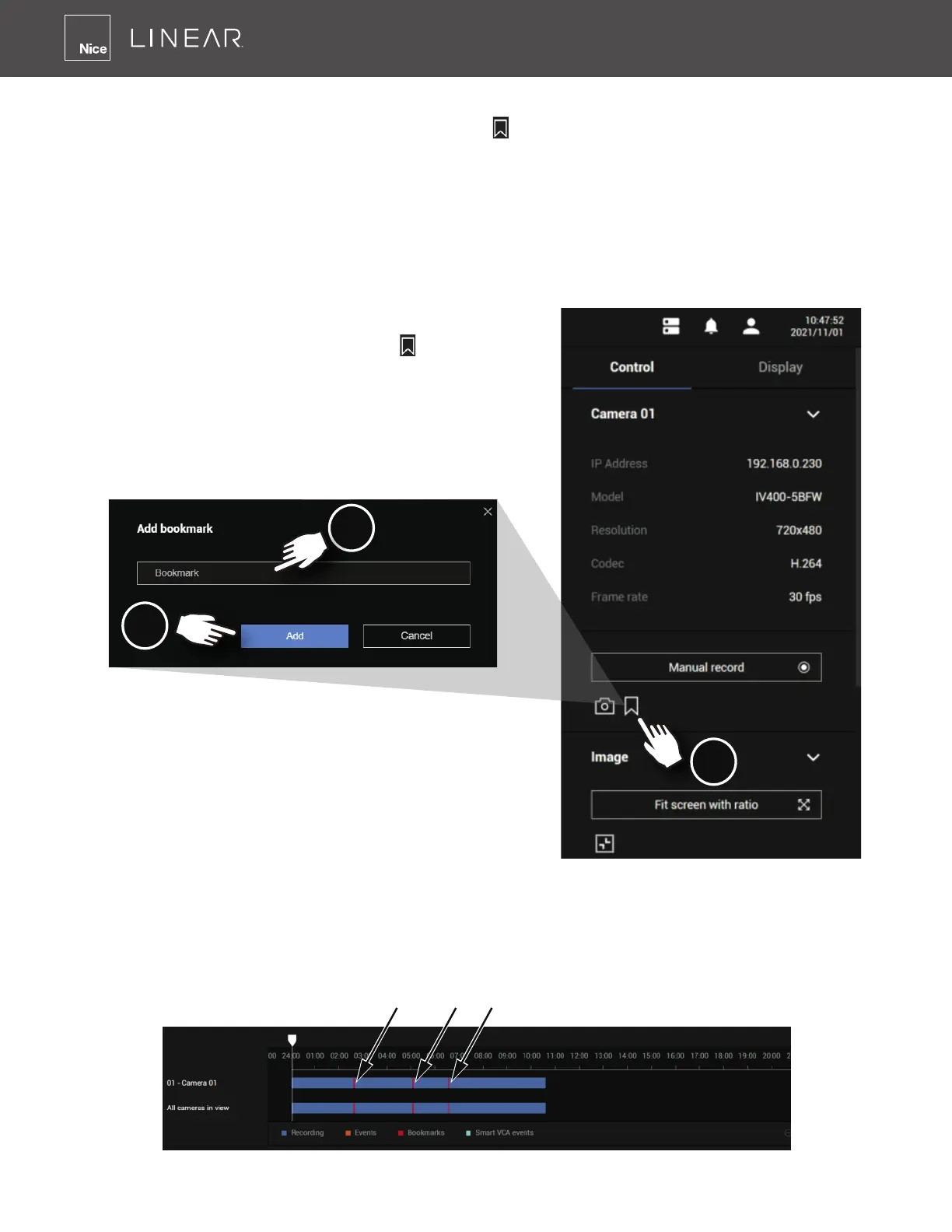 The bookmark function can be executed on a live or recorded stream when you observe a
