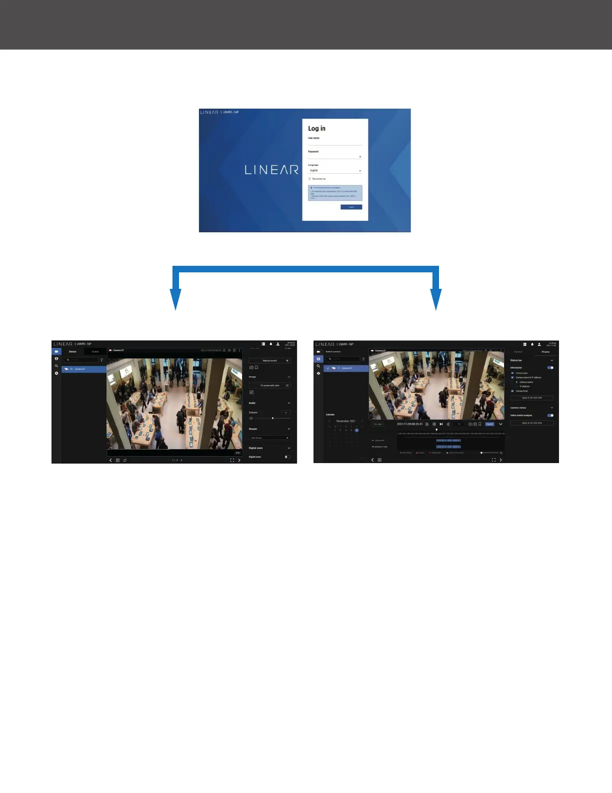 The NVR system features a simple UI structure which consists of a Liveview window and