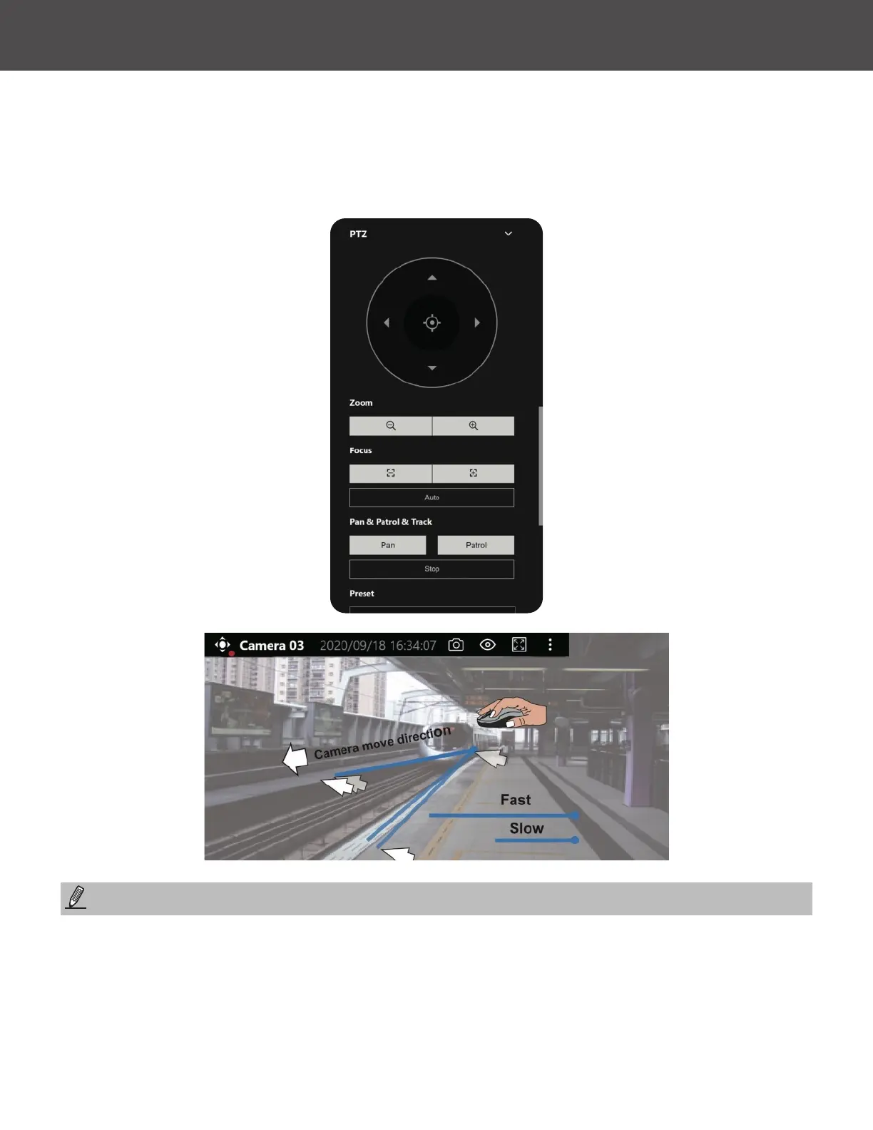 towards the direction you want to move� The mouse control is automatically enabled for PTZ