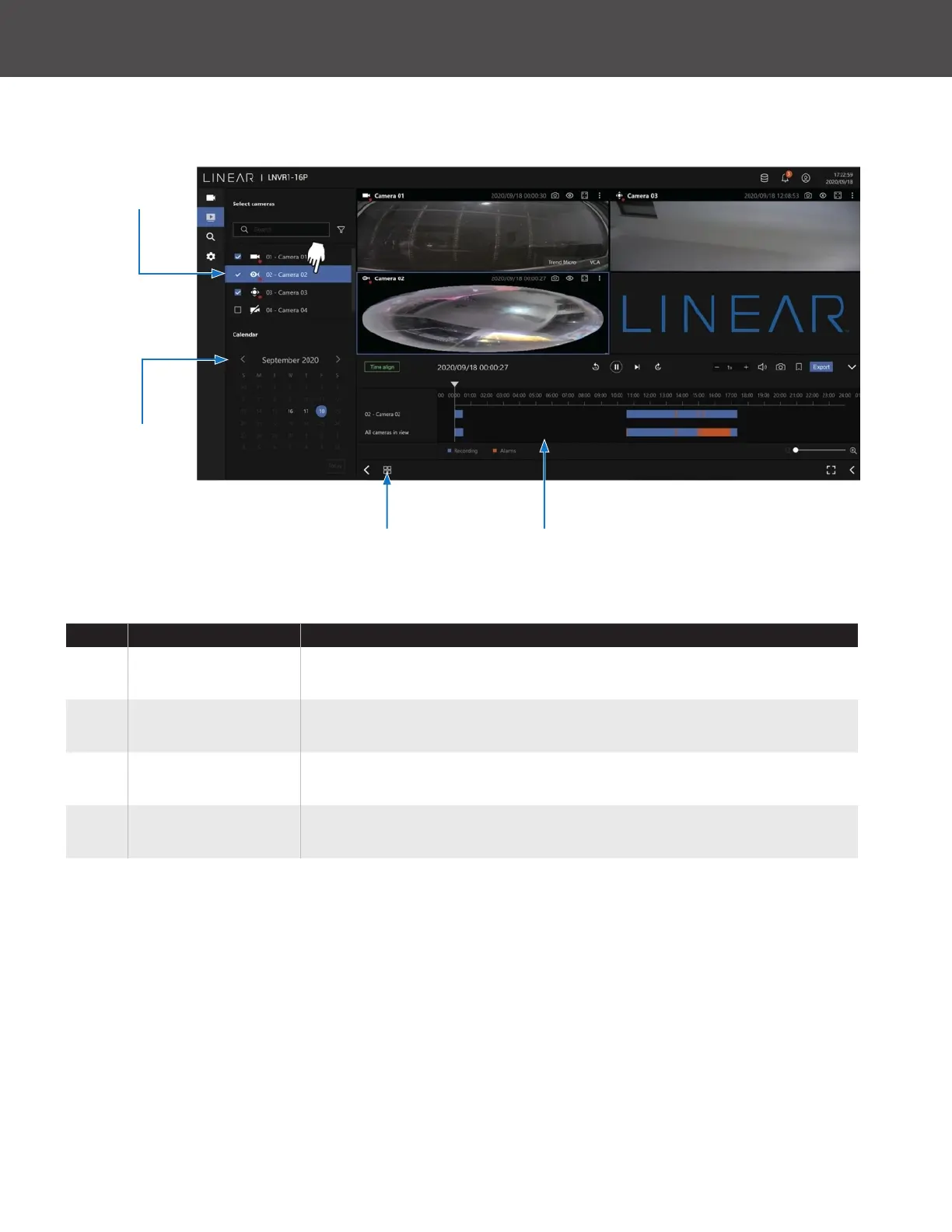 days will be highlighted by a lighter text� Click to select the days with recordings�