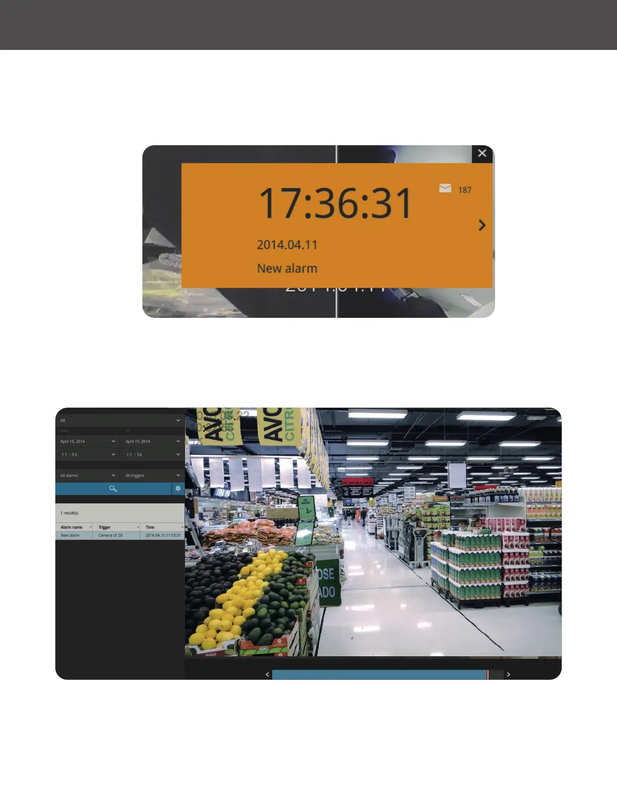 example, by digital inputs or motion detection), an alarm message will prompt on the screen�
