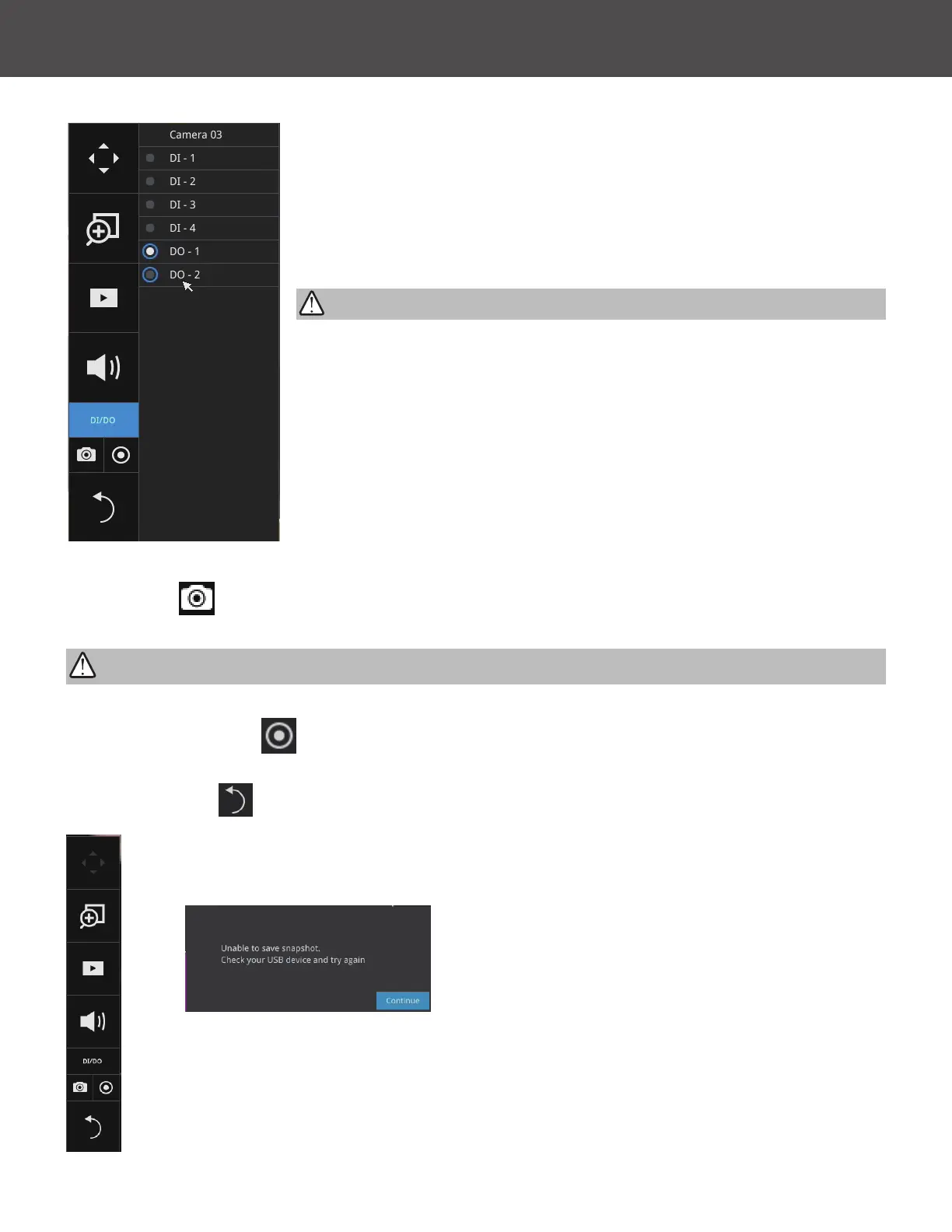 1� Snapshot : is used to take a snapshot from the camera currently selected� Note that this