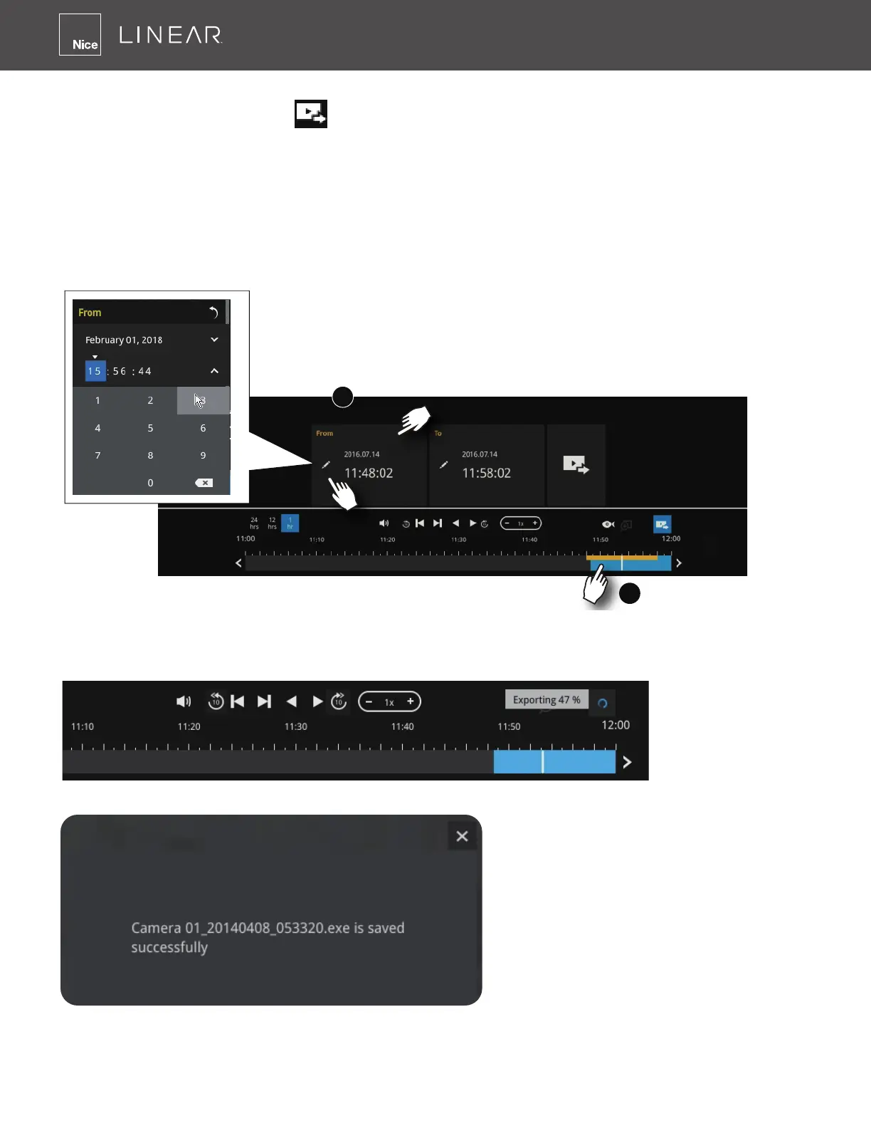 The export process is indicated on the right� Depending on the length of footage to be exported,