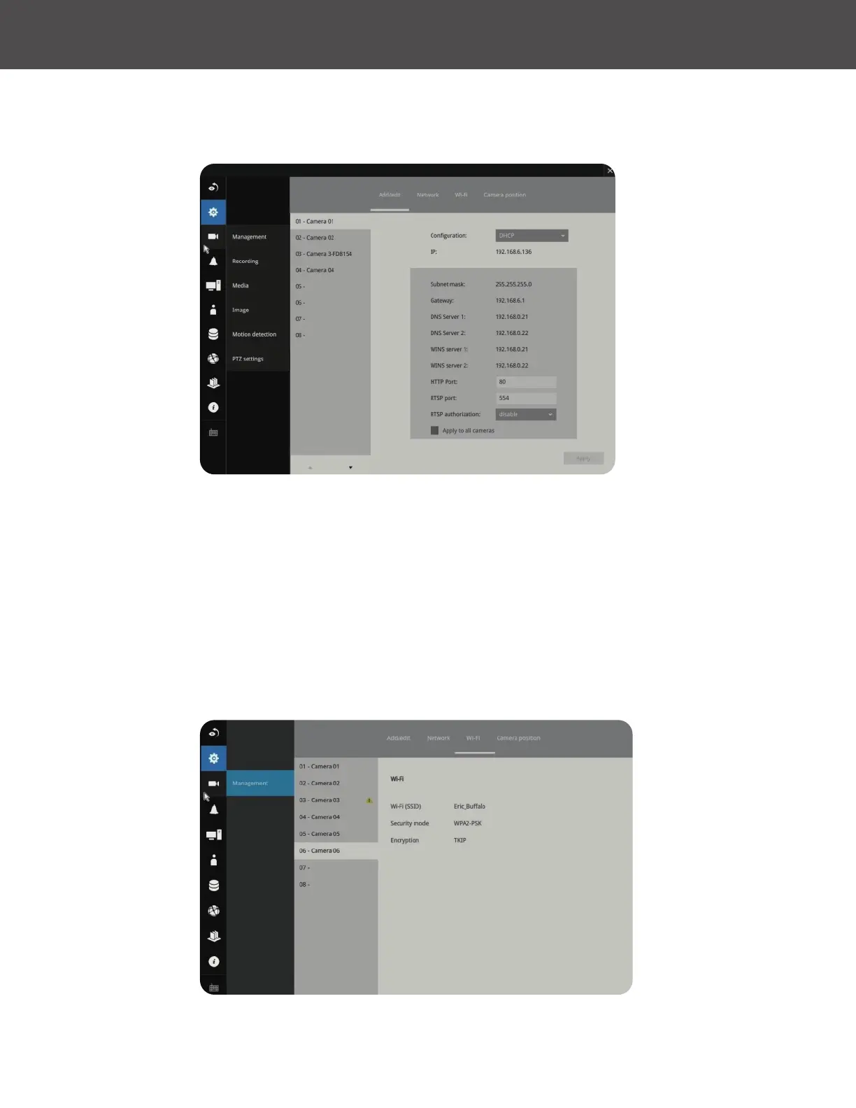 can remember the MAC addresses of cameras, if IPs are changed under the DHCP conguration,