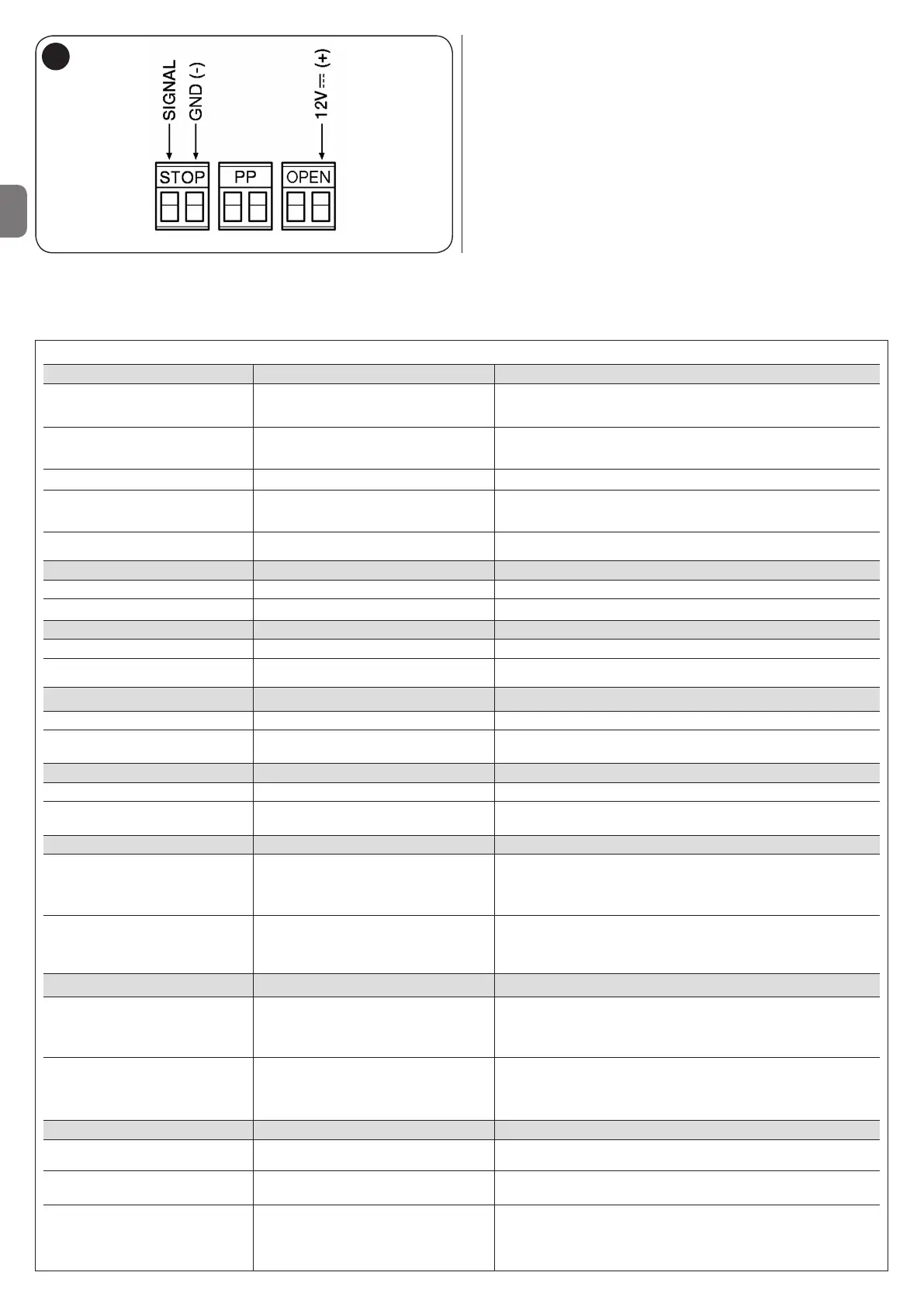 des entrées STOP, OPEN, CLOSE, intervention des photocellules ou quand on