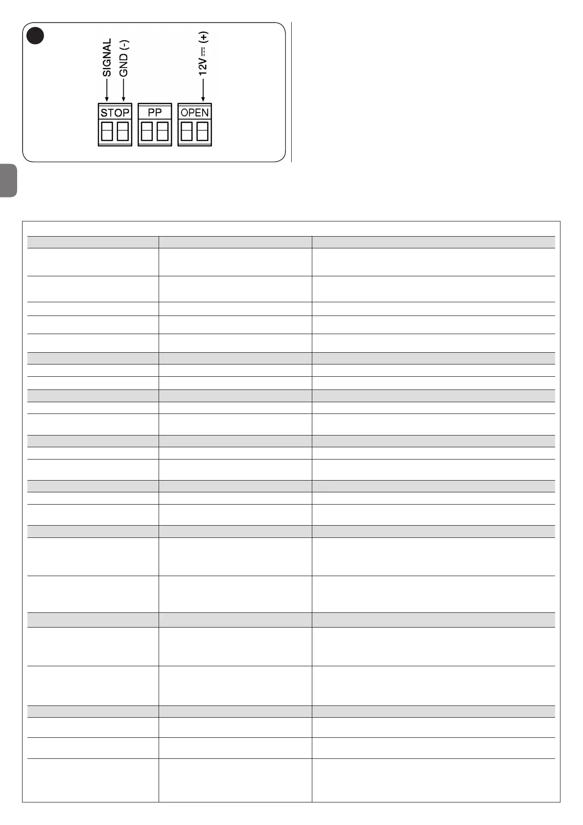 TABLA 12 - Leds de los bornes presentes en la central de mando