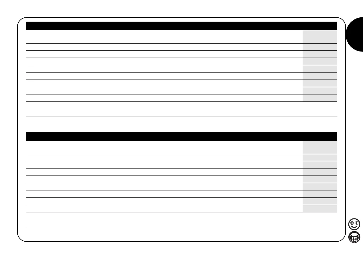 Table “C5” Enter a combination valid for the two outputs and (Relays 1 and 2) Example