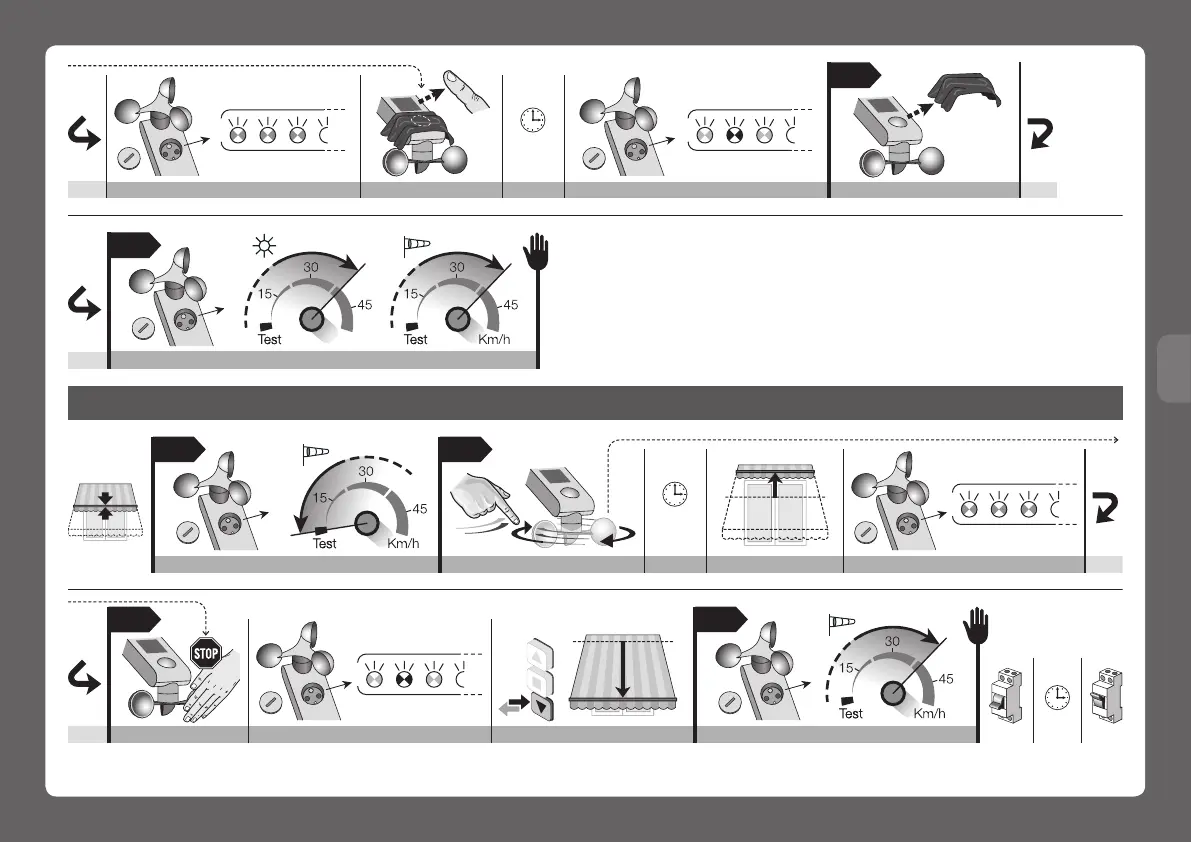 Girar el regulador a “Test” Activar las aspas Esperar Subida Serie de parpadeos