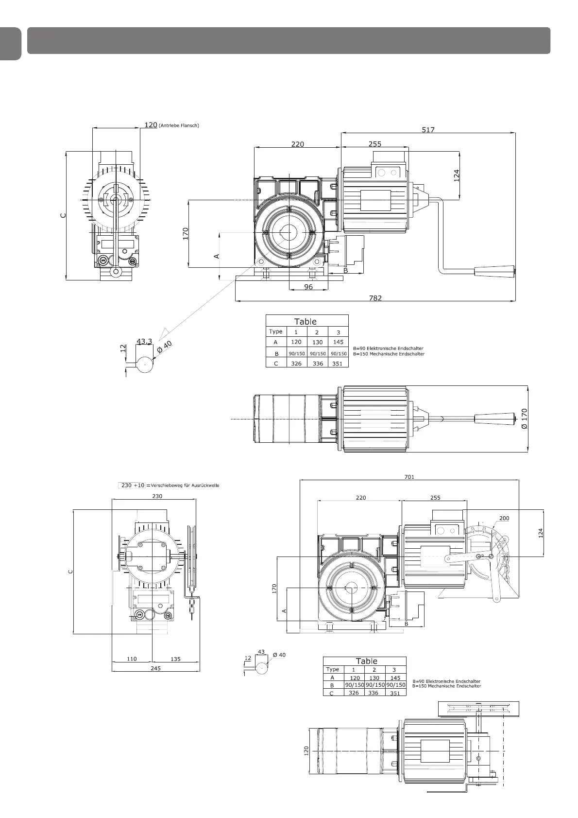 DIMENSIONED DRAWINGS OF GEARMOTORS FOR ROLLING SHUTTERS