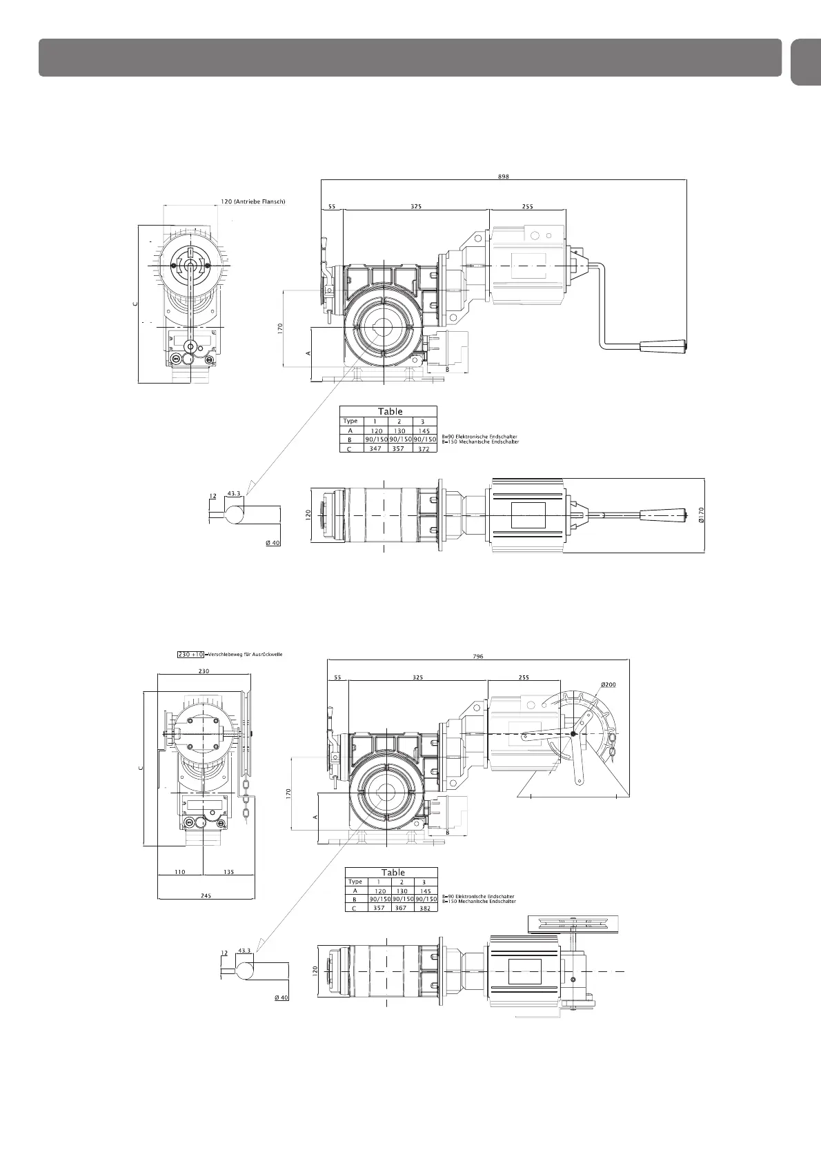 DIMENSIONED DRAWINGS OF GEARMOTORS FOR ROLLING SHUTTERS