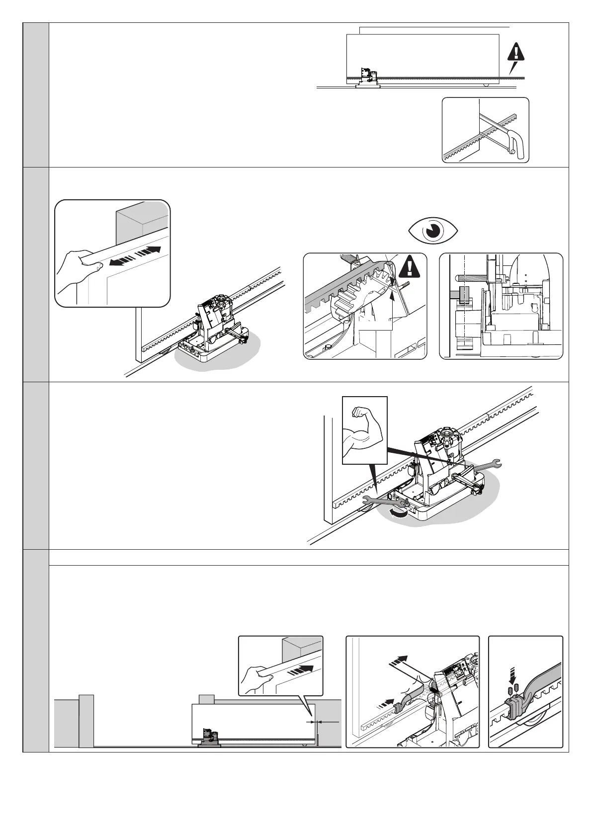N.B.: make sure that there is a gap of 1-2 mm between the rack and pinion for the entire length of the gate