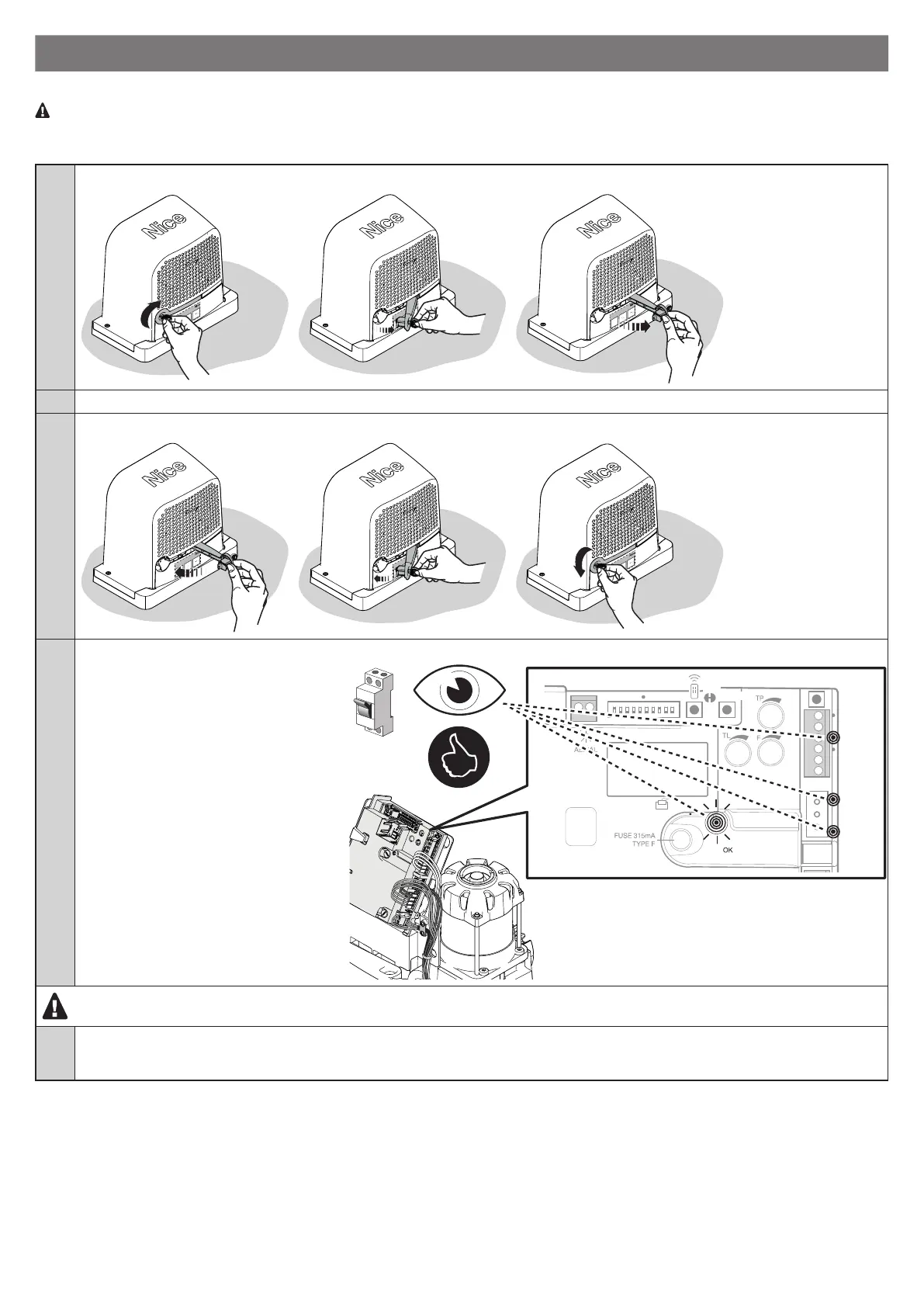 01. Manually release the gearmotor so that the gate can be opened and closed