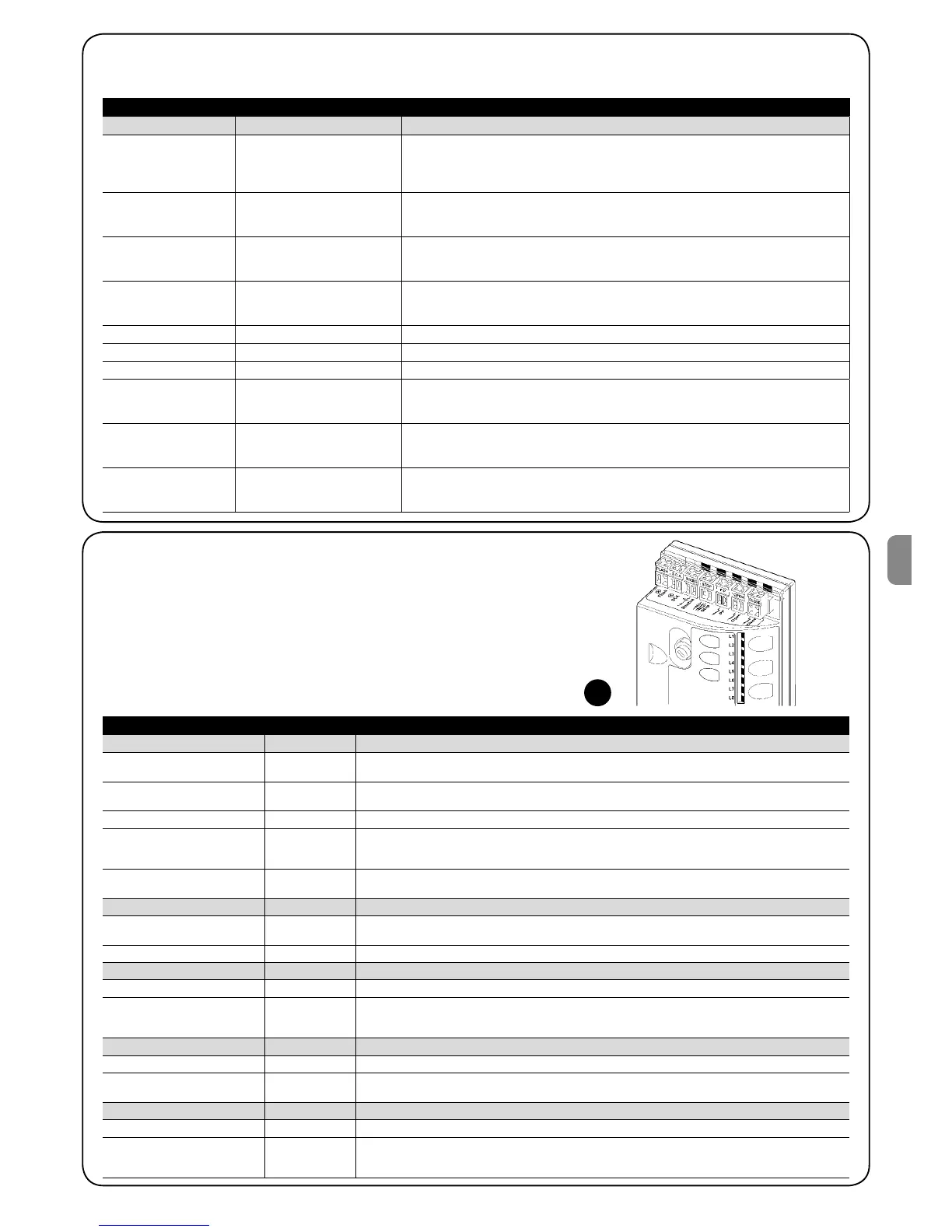 Таблица 20: индикаторы на клеммах блока управления