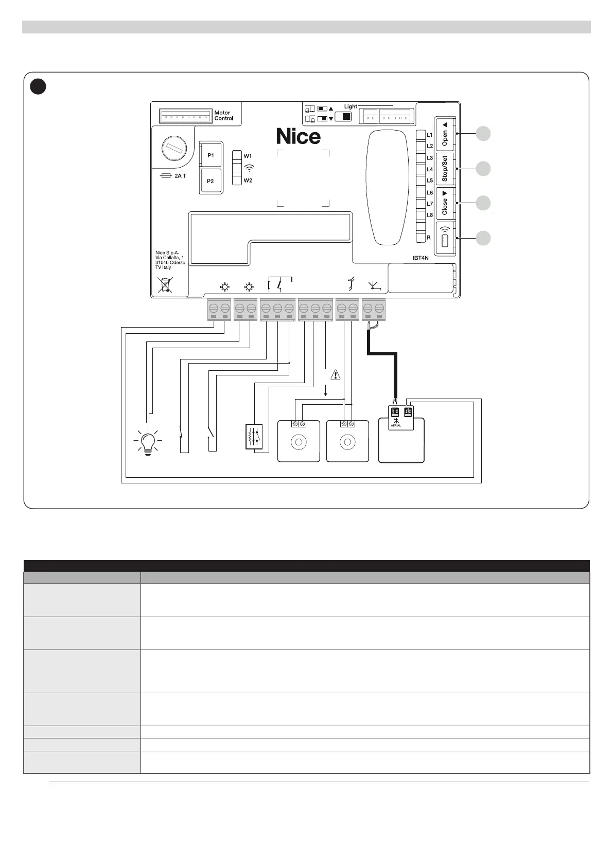 PHOTO Input for safety devices: it is possible to connect "Normally Closed" contacts to this input.