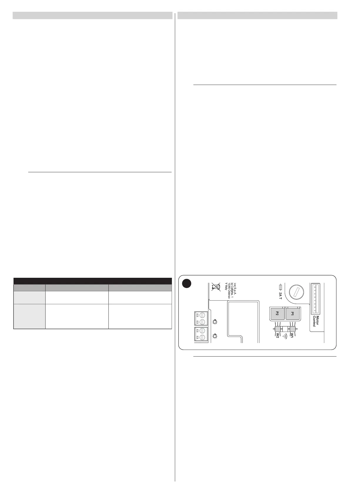 The module integrated in the control unit has 2 buttons (P1 and P2) and