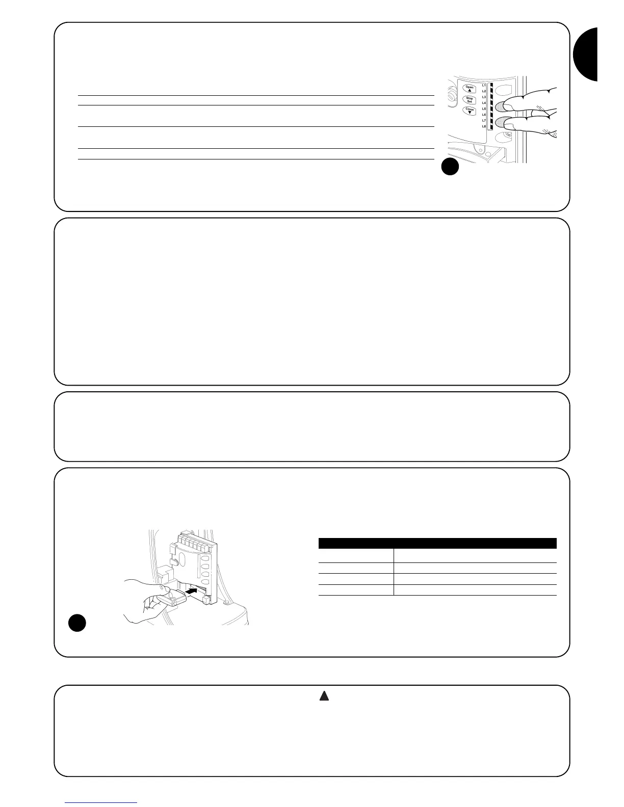 After self-learning the devices, leds L3 and L4 start flashing; the control unit must self-learn the length of the gate. During this stage, the