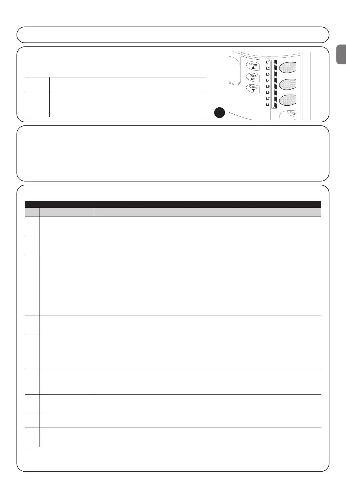 Tijekom normalnog rada motoreduktora RUN, LED žaruljice L1….L8 bit će upaljene ili ugašene ovisno o statusu funkcije koju predstavljaju,