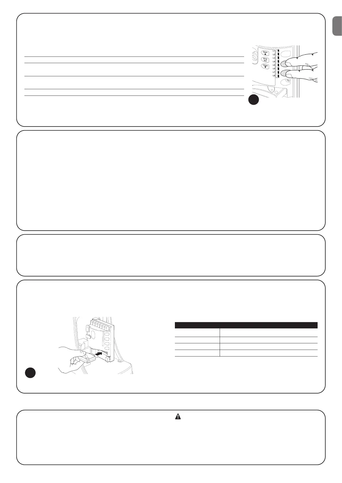 After self-learning the devices, leds L3 and L4 start flashing; the control unit must self-learn the length of the gate. During this stage, the length