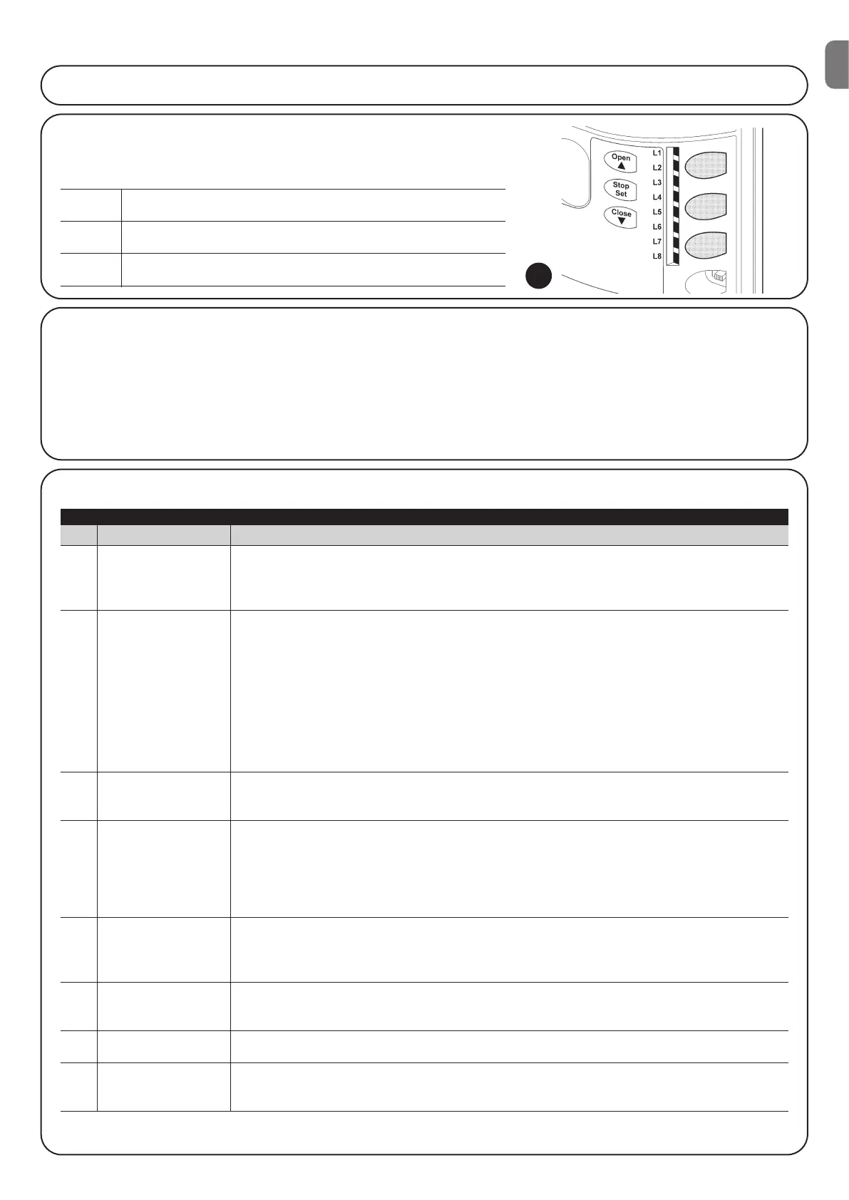 L1 Automatic Closing This function causes the door to close automatically after the programmed time has lapsed.
