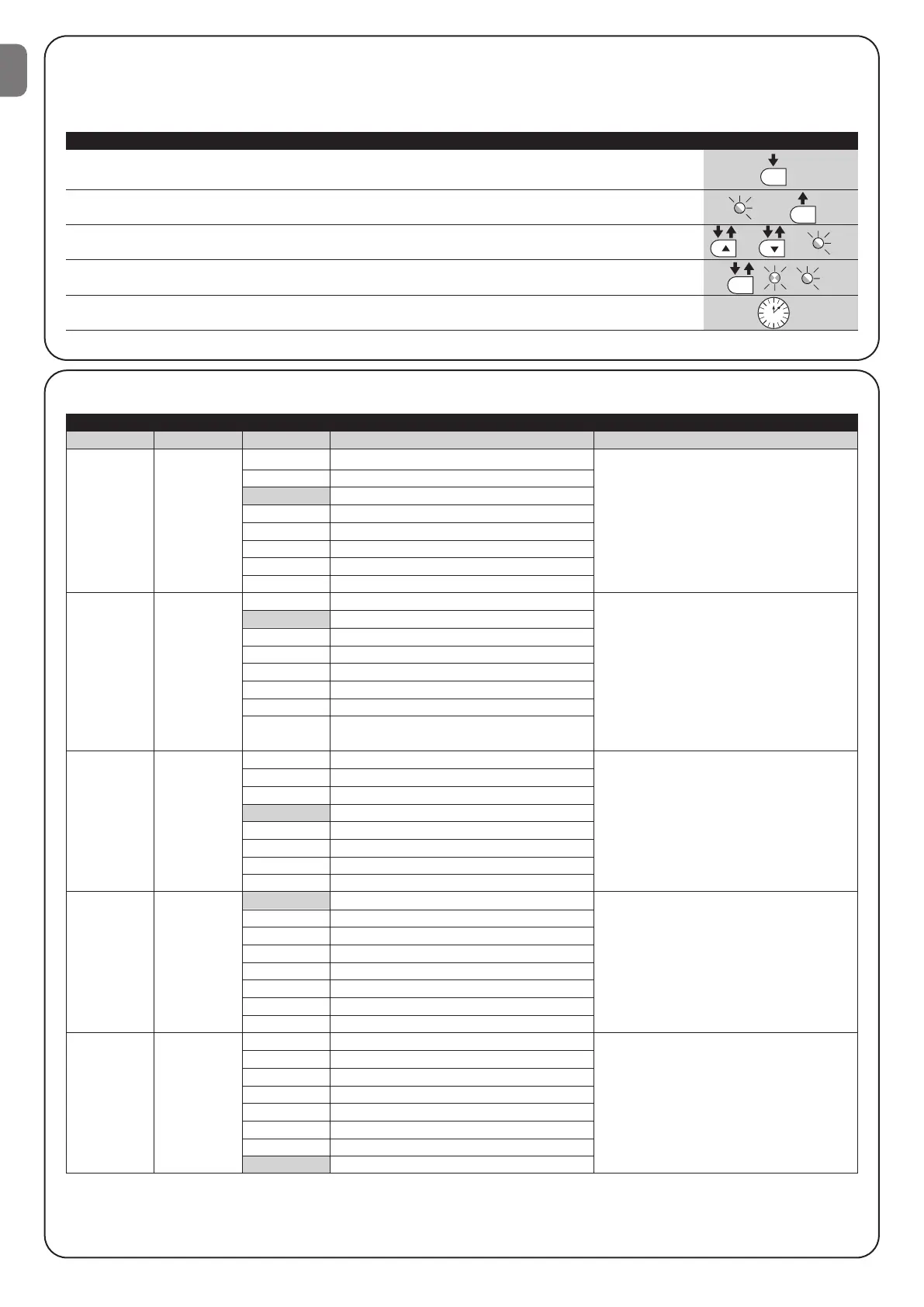 Note: Points 3 and 4 can be repeated during the same programming phases in order to set other functions to ON or OFF