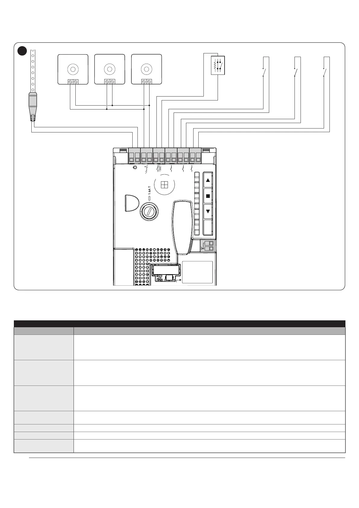 Input for devices that control the opening movement only; it is possible to connect “Normally Open” contacts.
