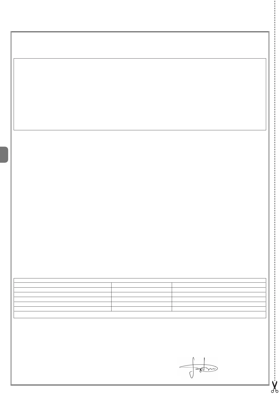 Losscheuren, het kader nr. 1 invullen en aan de eigenaar van de automatisering overhandigen, samen met de gebruikshandleiding en het onderhoudsplan