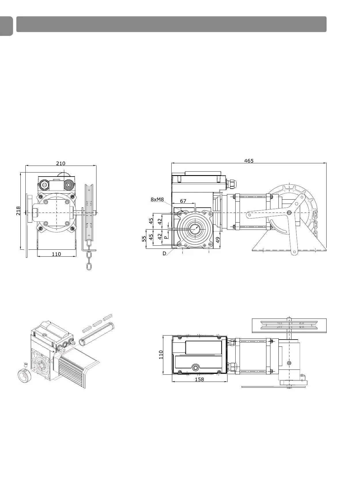 ESQUEMAS ACOTADOS DEL MOTORREDUCTOR PARA PUERTAS SECCIONALES