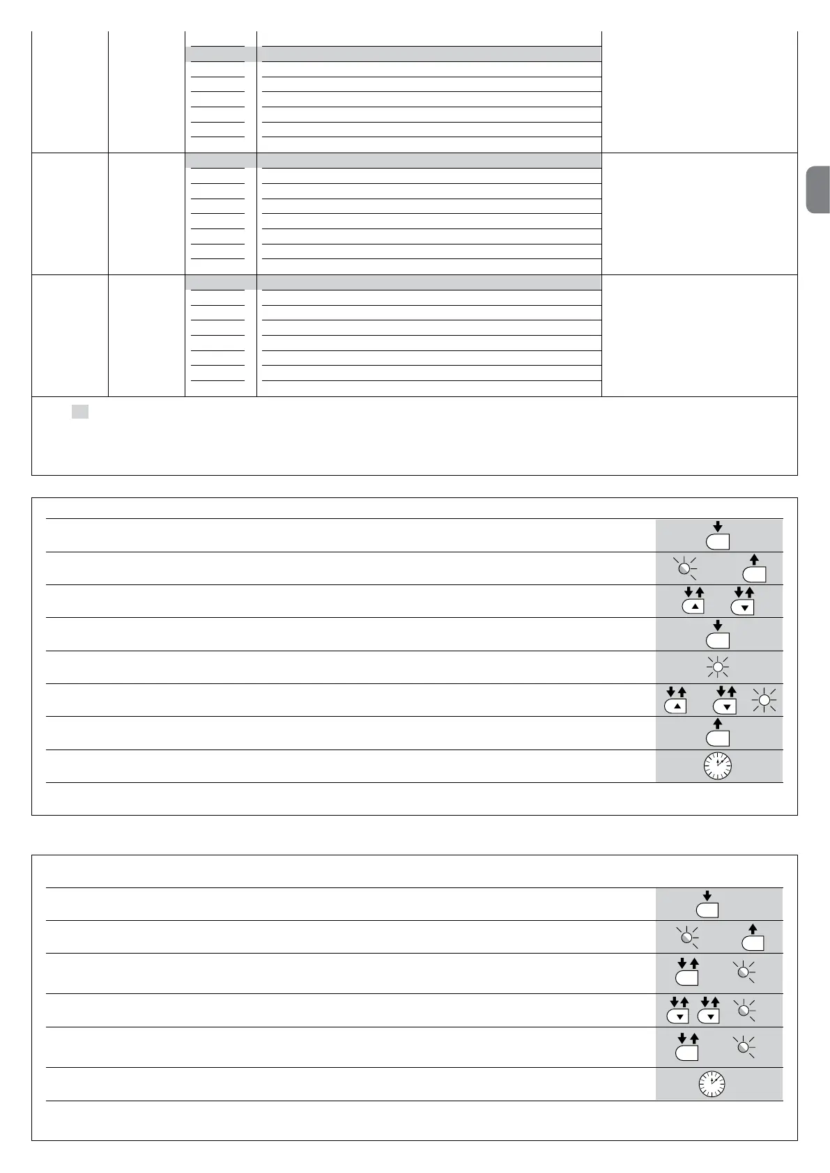 Note – les points de 3 à 7 peuvent être répétés au cours de la même phase de programmation pour régler plusieurs paramètres