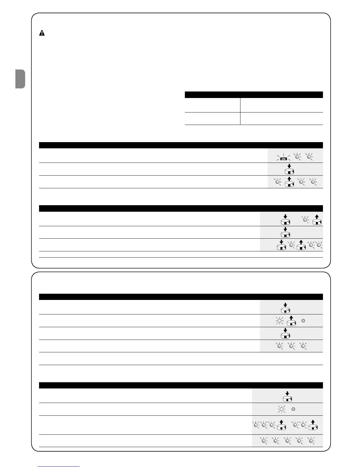 N.B. Si la mémoire est pleine (30 émetteurs mémorisés) on verra 6 clignotements longs et l’émetteur ne pourra pas être mémorisé.