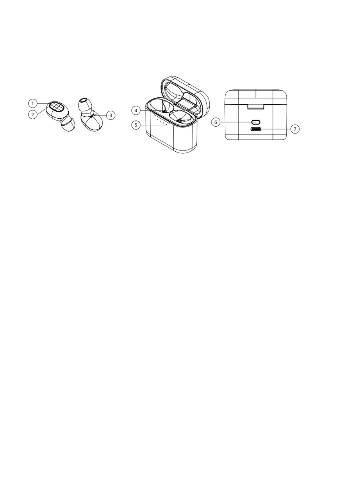 1. Take both headphones out of the charging box and take off the labels protecting the charging pins (3) on the