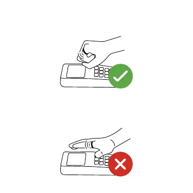 3. Držte prsten ve vzdálenosti přibližně 1-3 cm od terminálu, dokud neu-