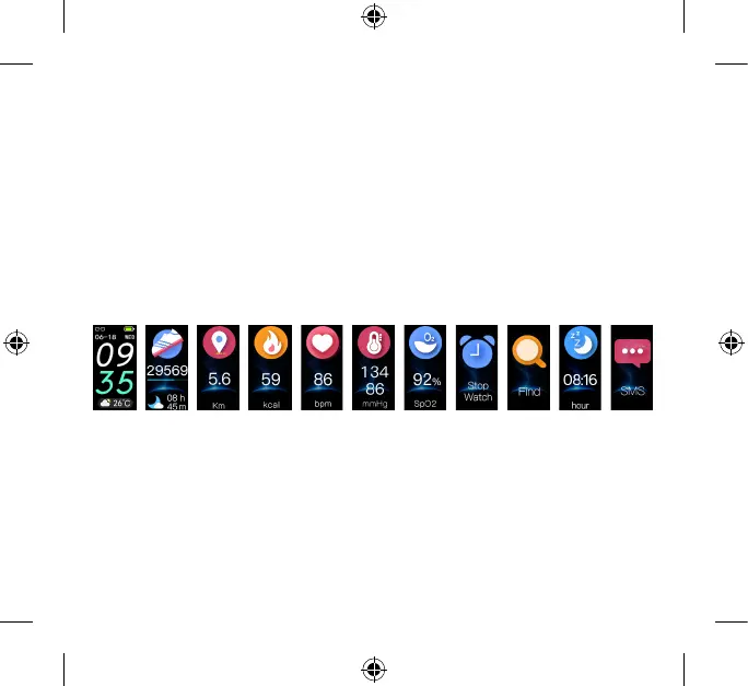 Przełączanie pomiędzy poszczególnymi funkcjami bransoletki (ekranami) odbywa się za