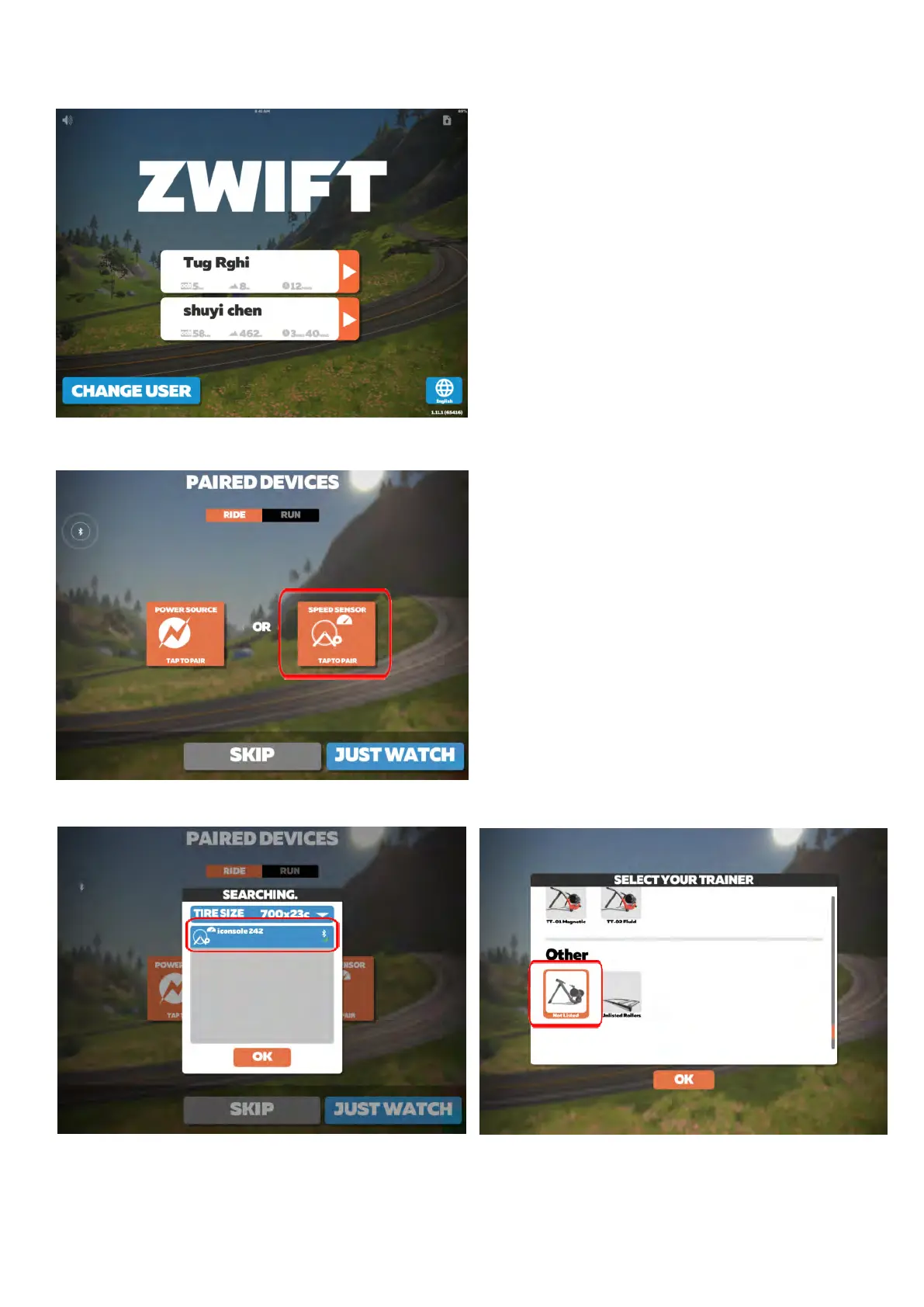 3.1 Open the Zwift app, select the user.