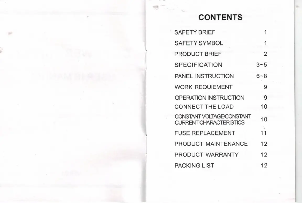 Nicepower R-SPS1203 - Table of Contents