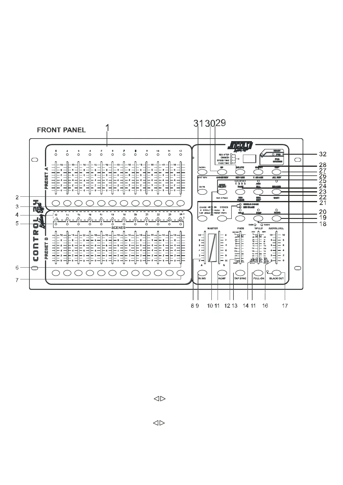 7. Flash key 13-24: press to activate maximum channel output.