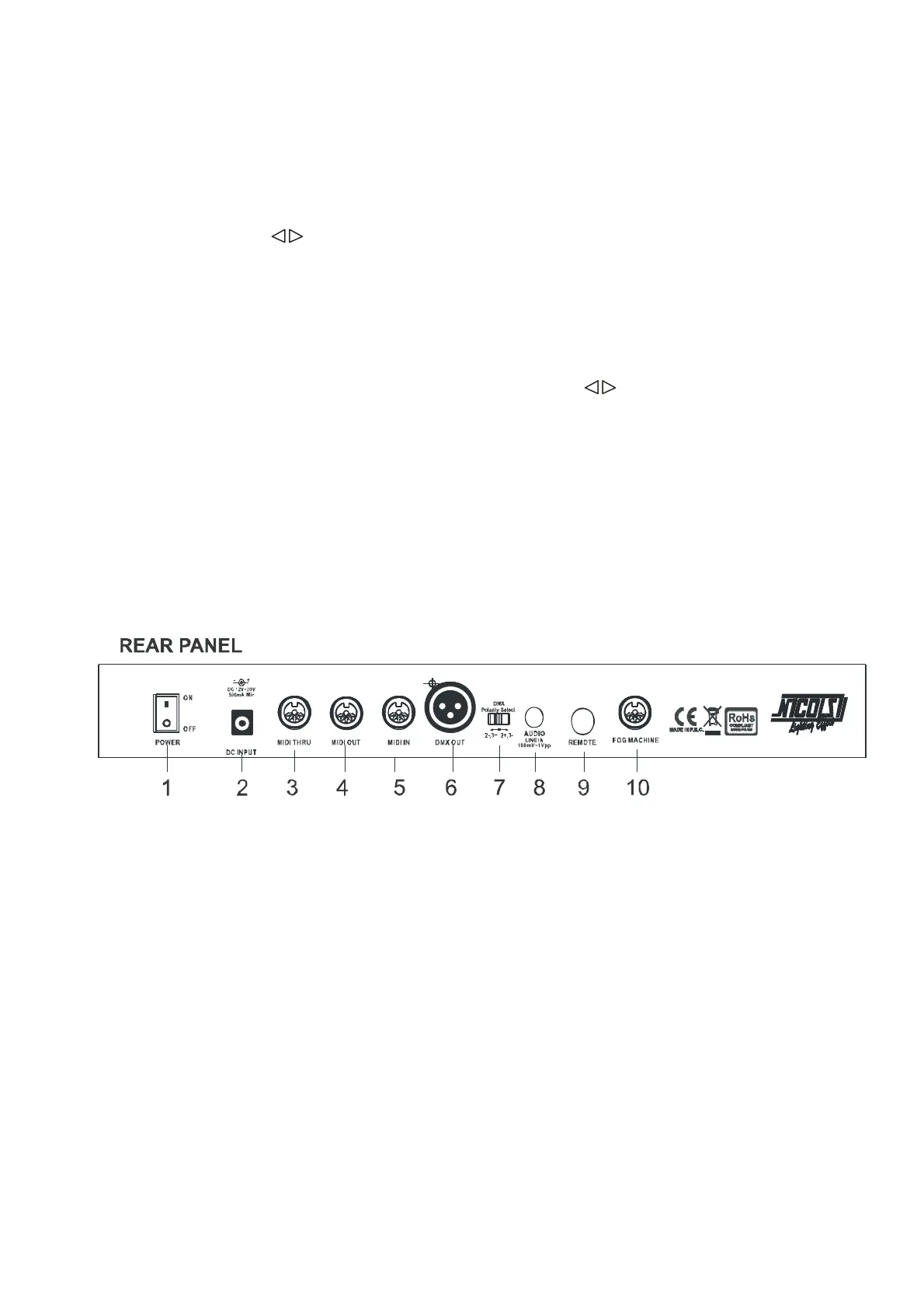 9. REMOTE CONTROL: FULL ON and BLACK OUT are remote controlled using 1/4`` stereo