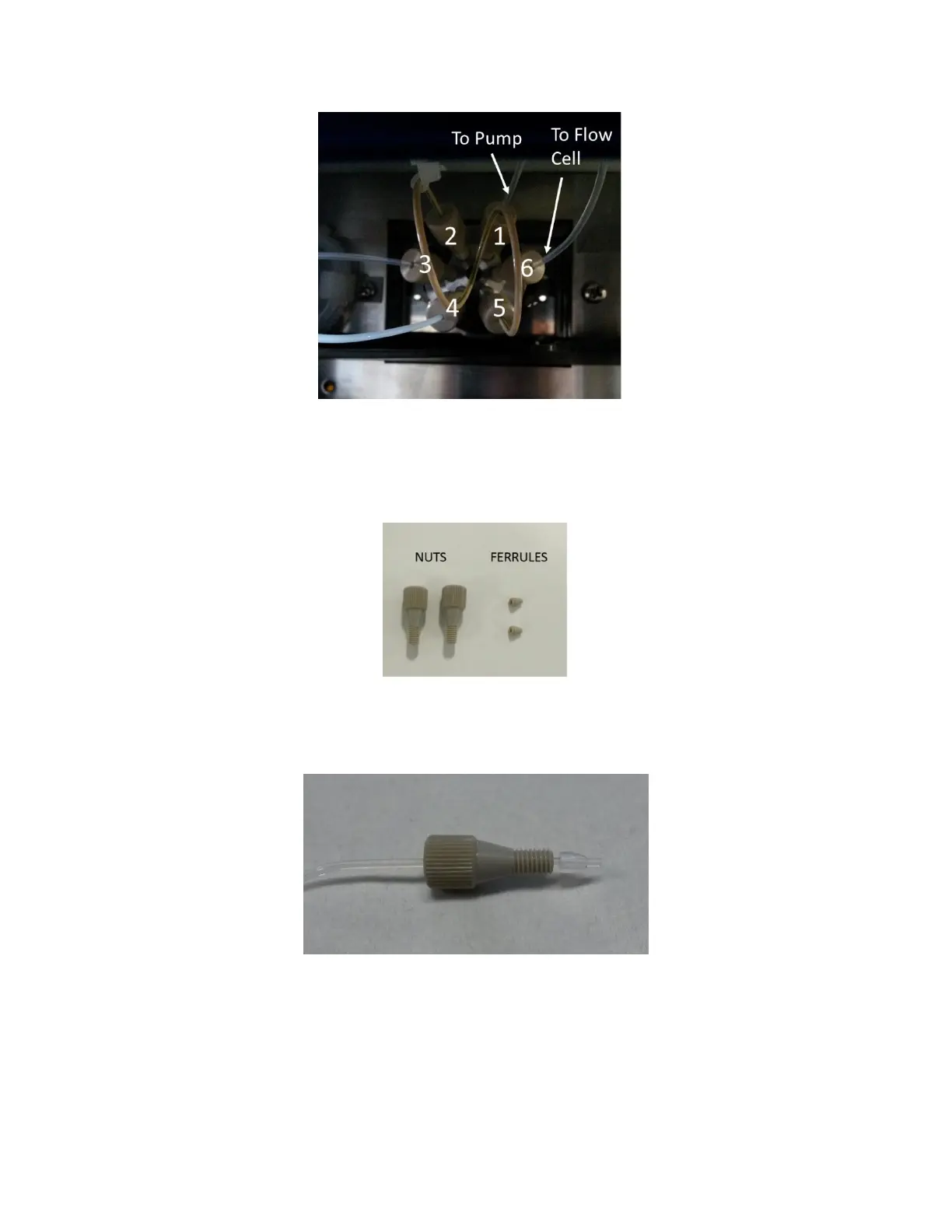 Figure 1.9 Nuts and ferrules provided to connect Pump and Flow Cell tubing to valve.
