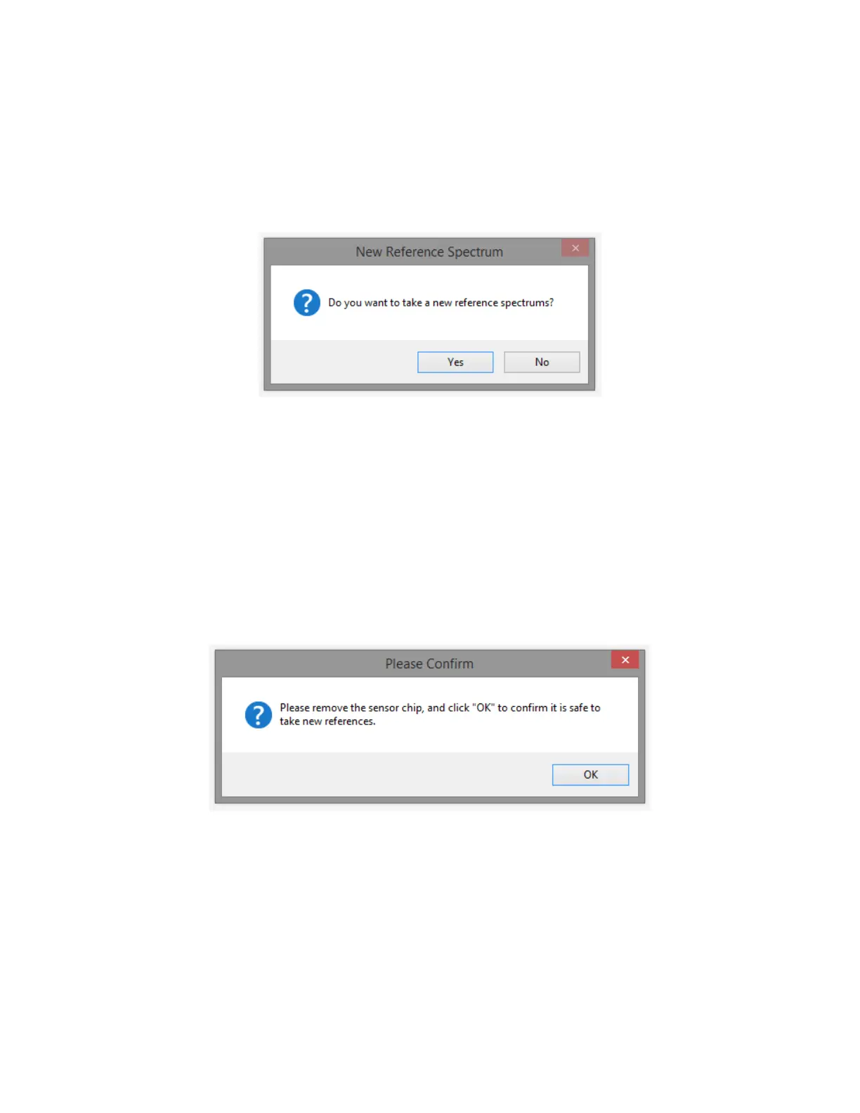 Select “Yes” to take new reference spectra and proceed to the next step below (the software