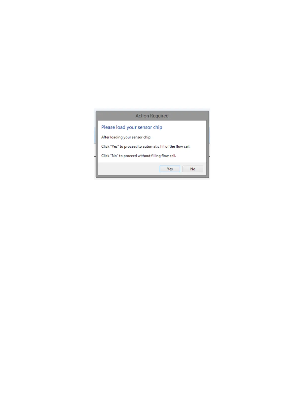 Figure 2.7 - Load Sensor Chip and automatic fill of Flow Cell prompt.