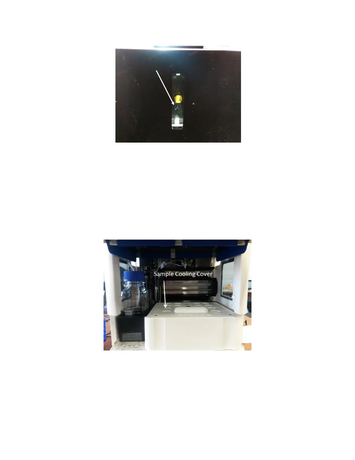 side of the sample holder area to guide in and secure the Sample Cooling Cover. Close the