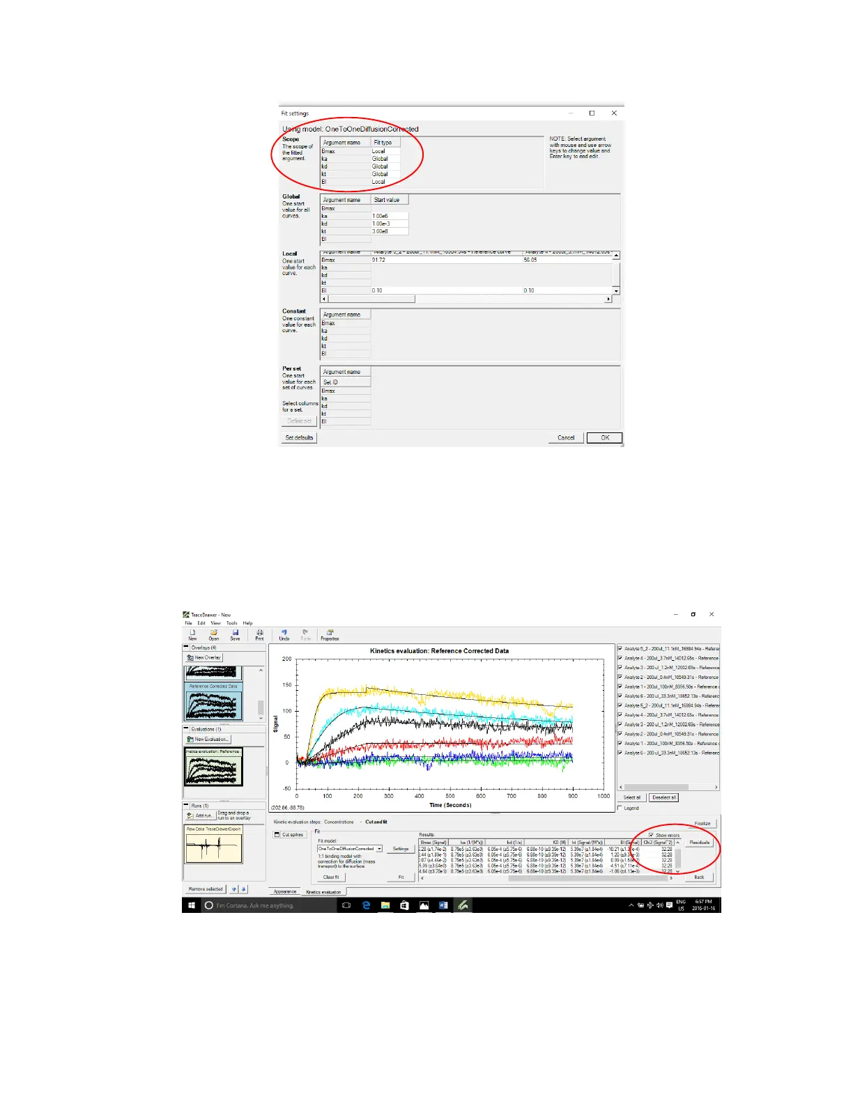 Figure 3.21 - Fit Settings window that appears when Settings button is clicked. Ensure ka, kd and kt are set to Global.