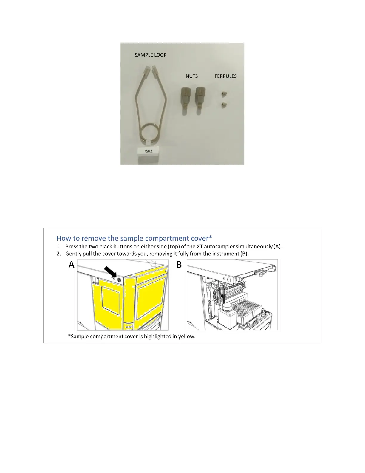 2. Remove the Sample Compartment Cover of the XT autosampler following the procedure