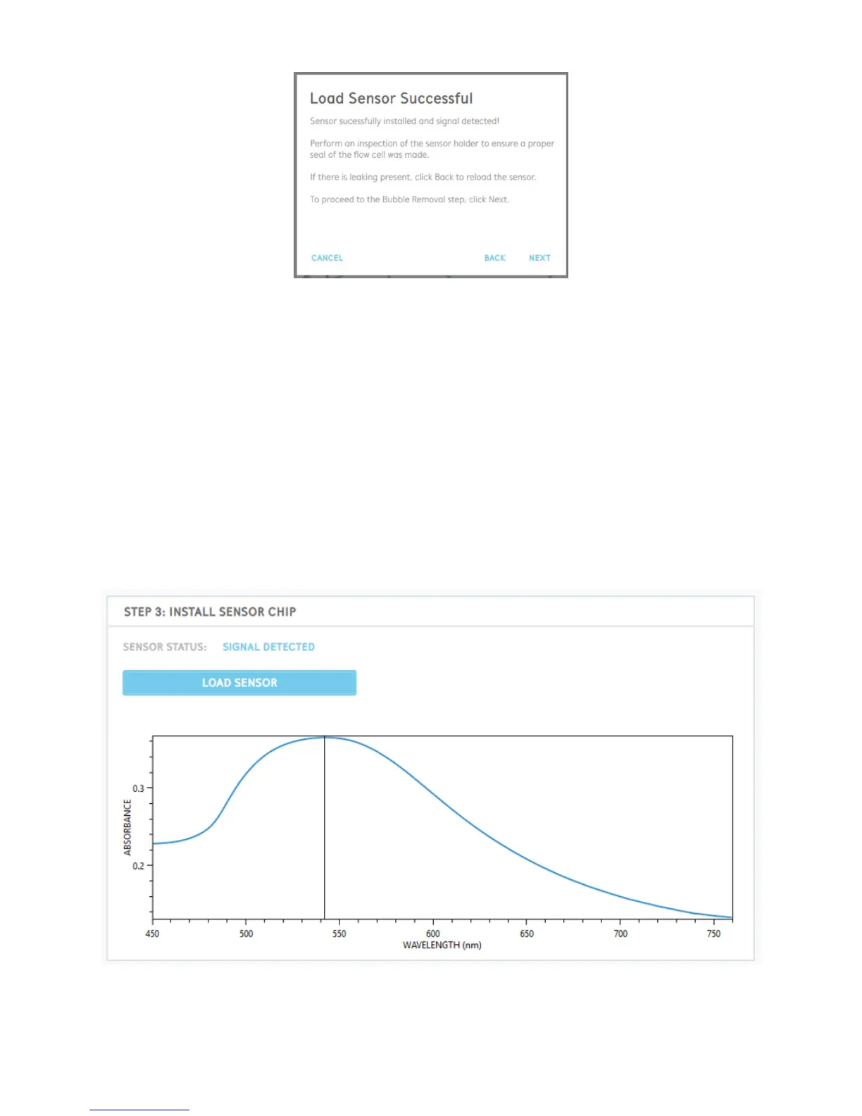 is present outside of the flow cell, select “Back” to begin the process to re-load the sensor.