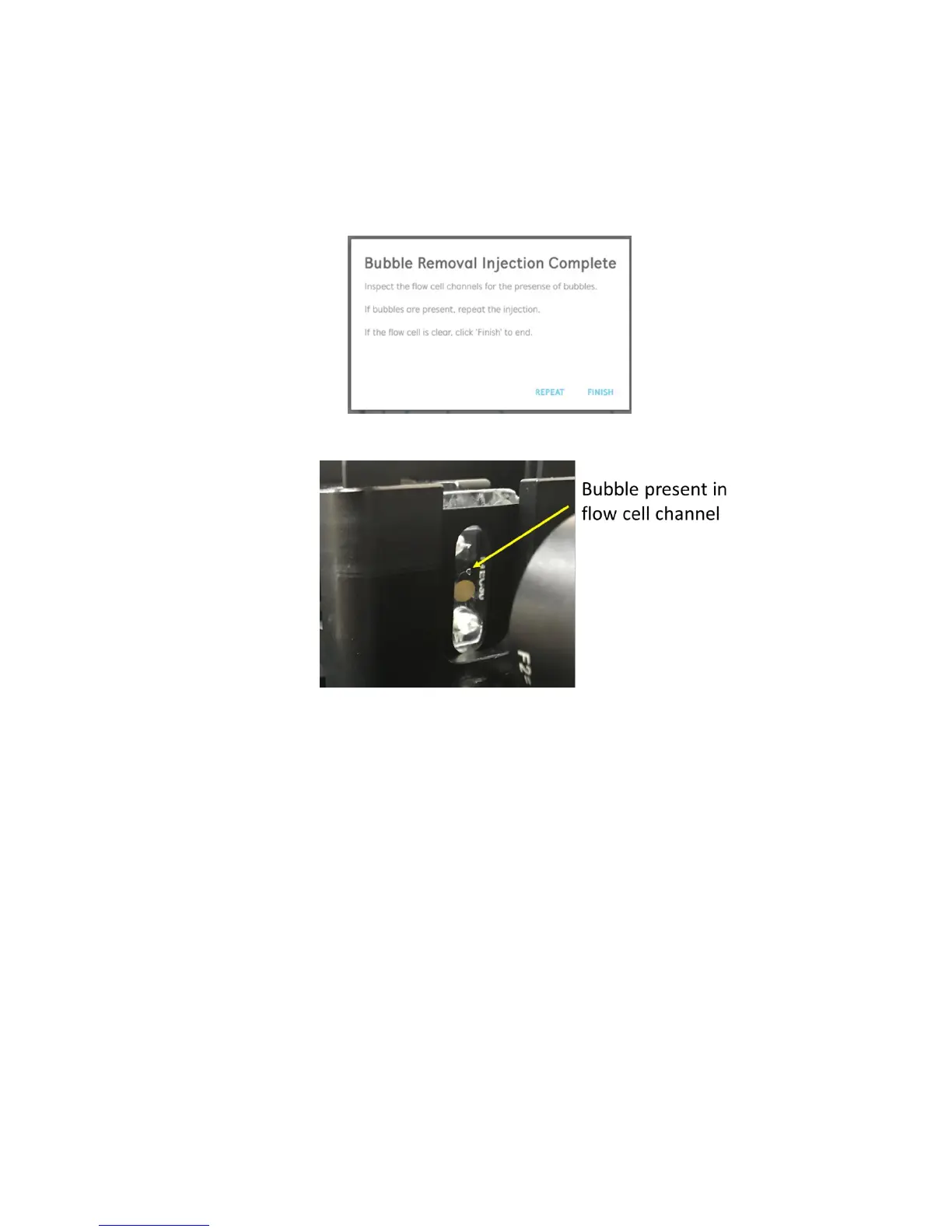 4. Once the flow cell channels are clear, click “Finish” to end the process. The bubble