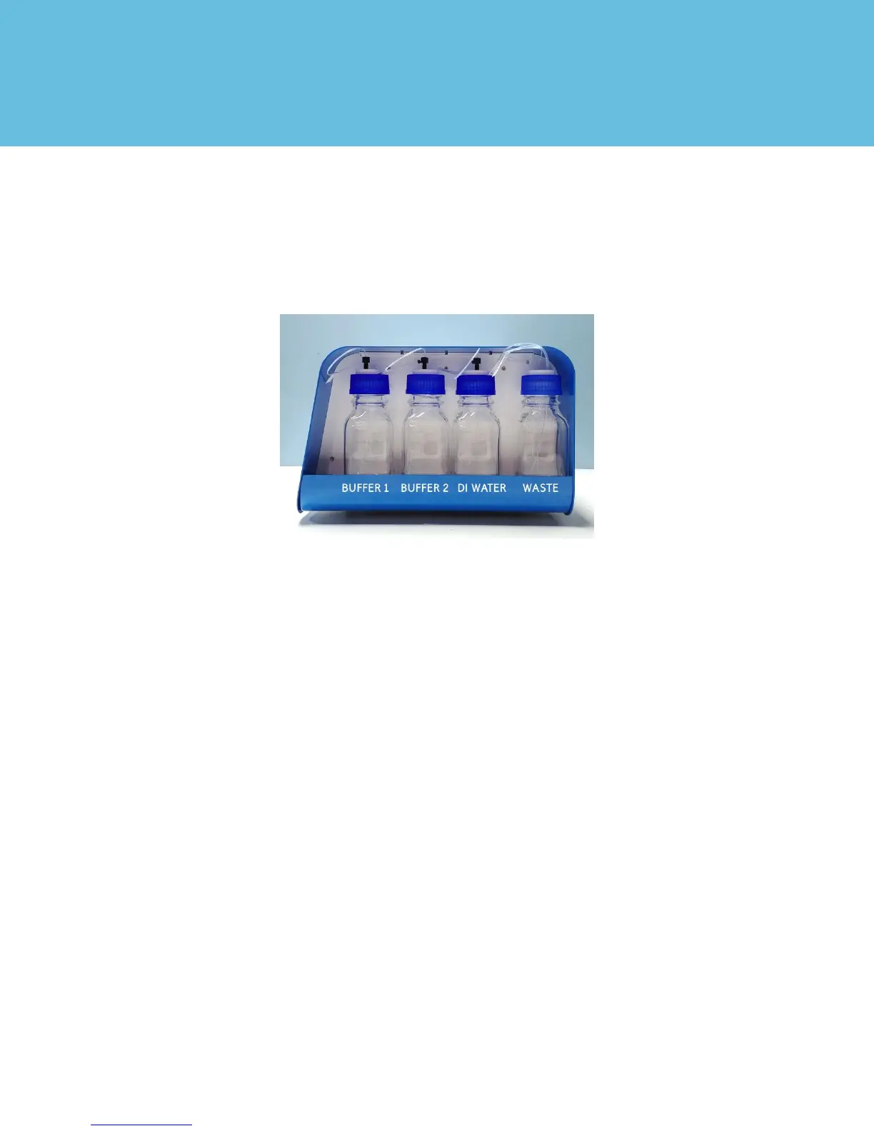 fluidic setup contains 2 buffer bottles, a bottle for DI water, and a waste bottle for the inlets and
