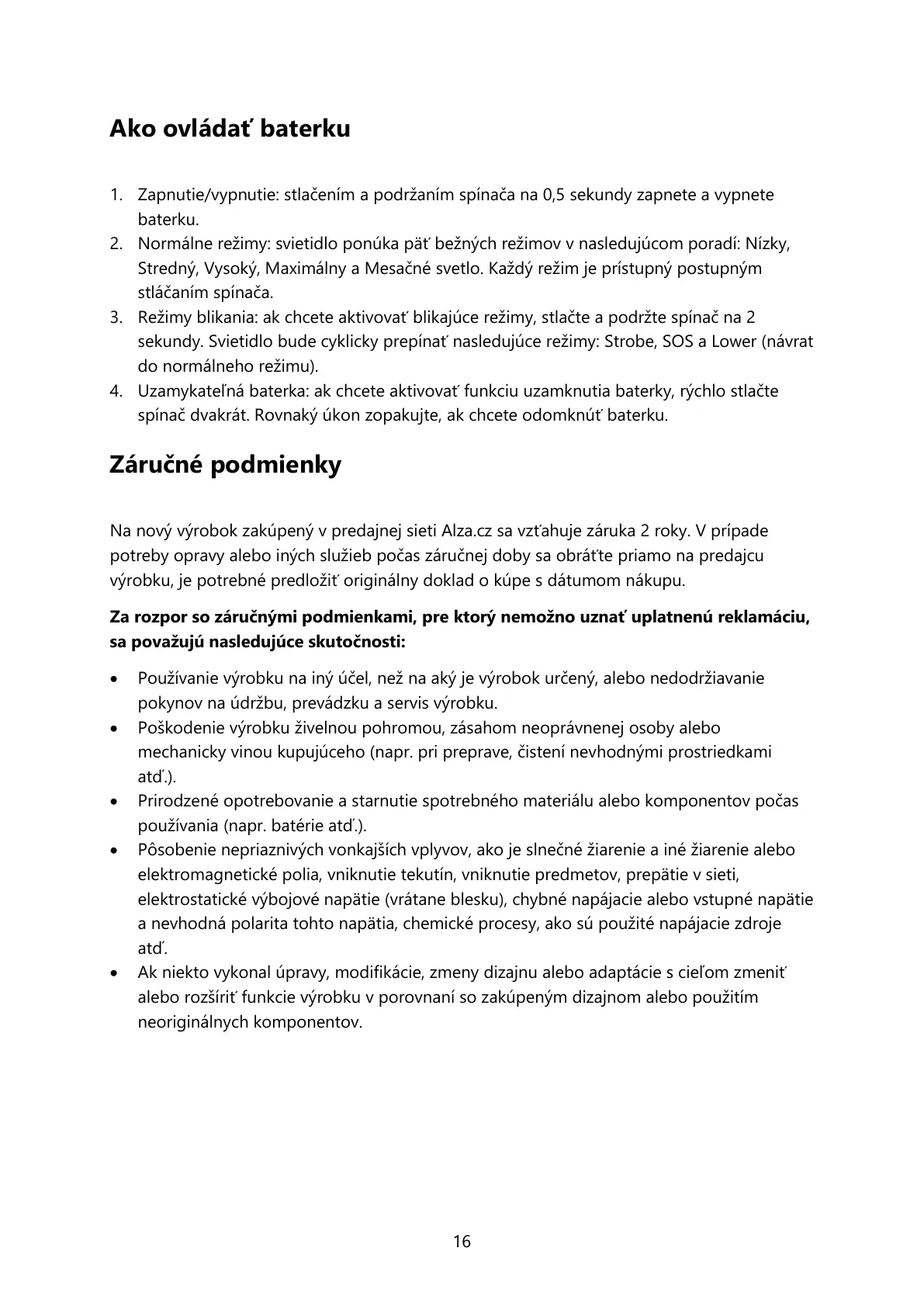 sekundy. Svietidlo bude cyklicky prepínať nasledujúce režimy: Strobe, SOS a Lower (návrat