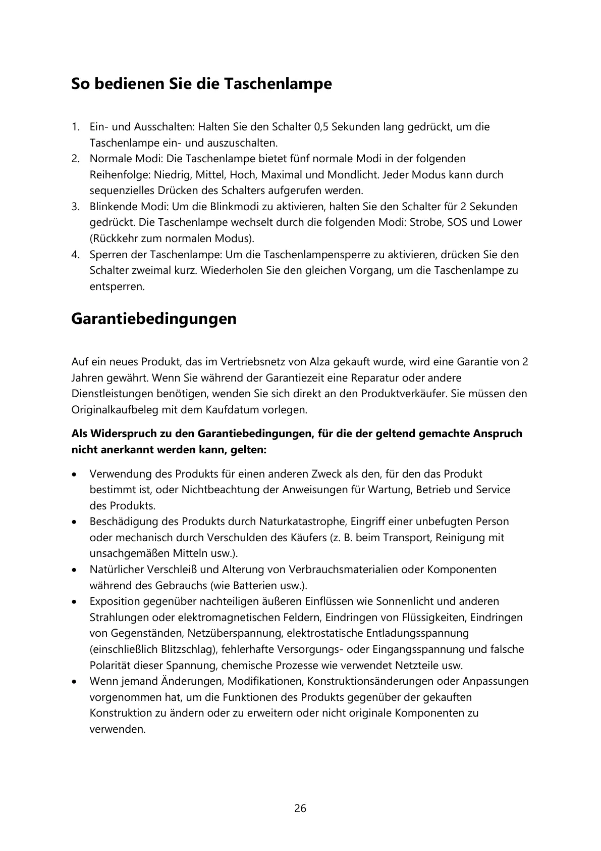 Auf ein neues Produkt, das im Vertriebsnetz von Alza gekauft wurde, wird eine Garantie von 2