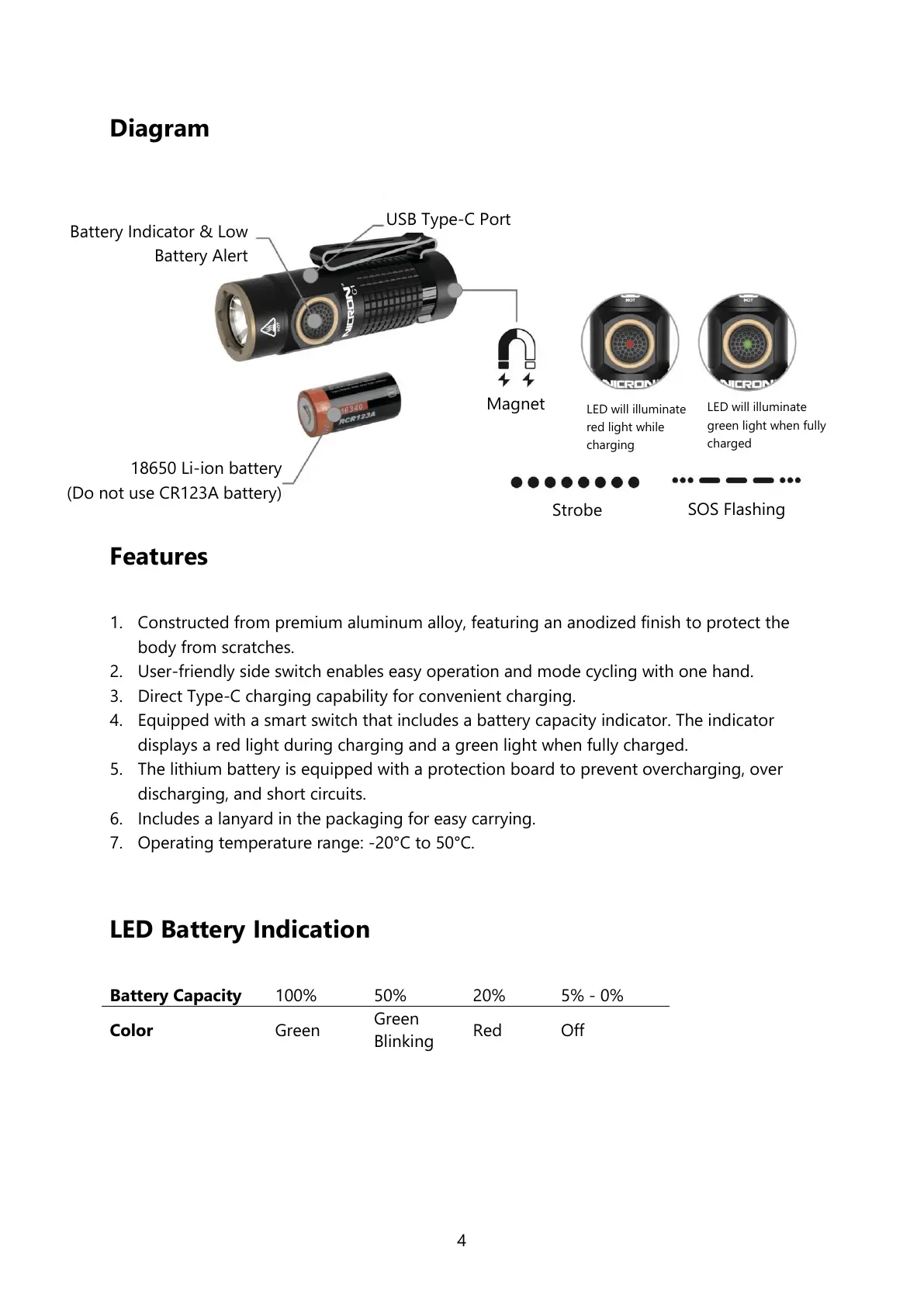 4. Equipped with a smart switch that includes a battery capacity indicator. The indicator