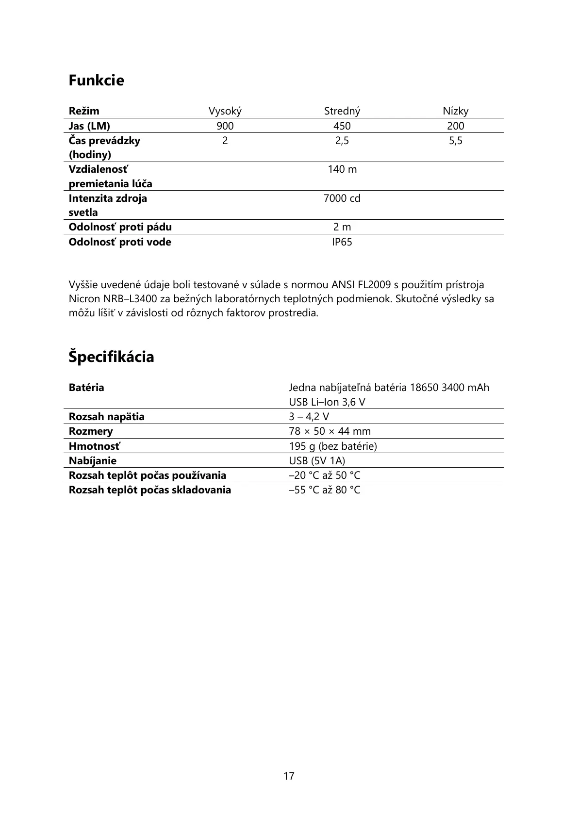 Nicron NRB–L3400 za bežch laboratórnych teplotných podmienok. Skutsledky sa