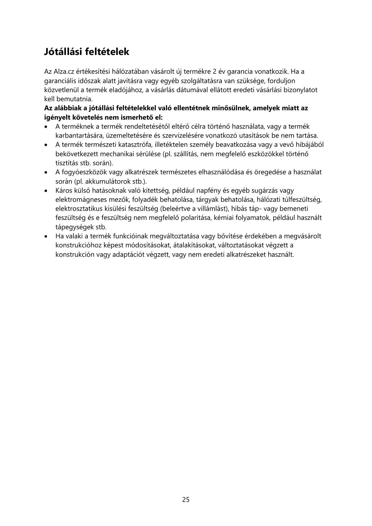 Az alábbiak a jótállási feltételekkel való ellentétnek minősülnek, amelyek miatt az